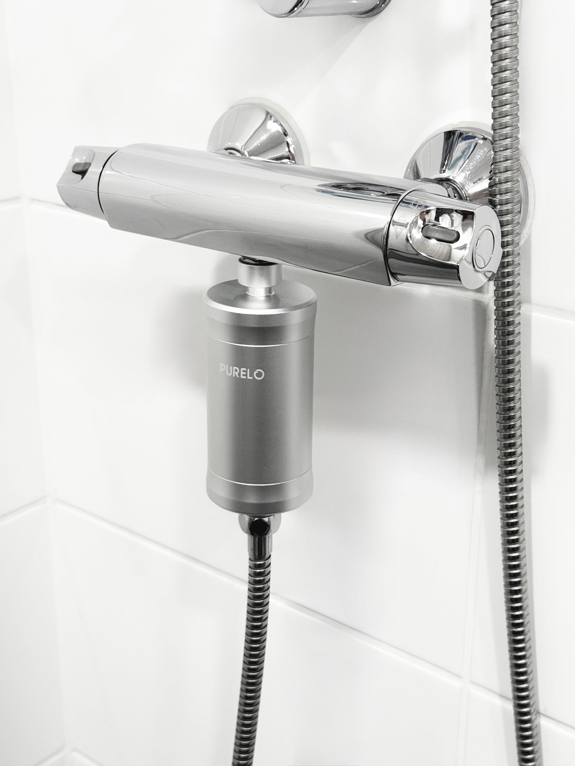Purelo Duschfilter är en stilren och miljövänlig lösning som passar nästan alla duschar. Produkten är tillverkad av hållbart aluminium och är enkel och